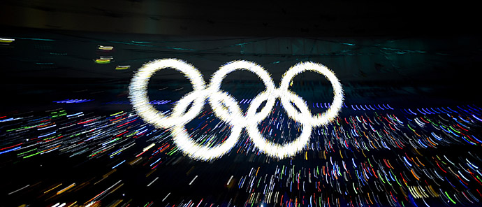 8月8日晚8時(shí),第29屆夏季奧林匹克運(yùn)動(dòng)會(huì)在國(guó)家體育場(chǎng)——“鳥(niǎo)巢”隆重開(kāi)幕。這是開(kāi)幕式上閃閃發(fā)光的夢(mèng)幻“五環(huán)”。
