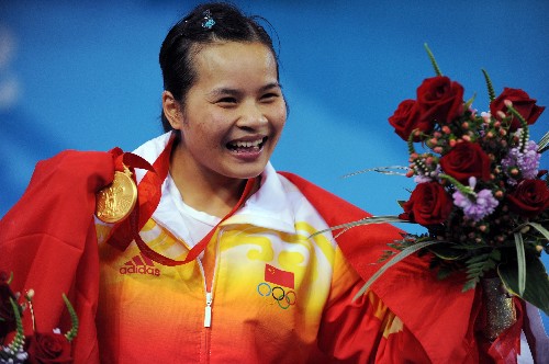8月9日,中國(guó)選手陳燮霞在頒獎(jiǎng)儀式上。當(dāng)日,中國(guó)選手陳燮霞在北京奧運(yùn)會(huì)女子48公斤級(jí)舉重比賽中以212公斤的總成績(jī)獲得冠軍,為中國(guó)代表團(tuán)捧得首金。新華社記者