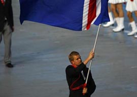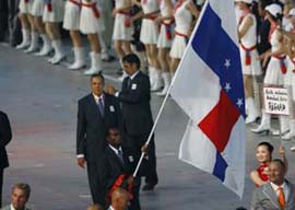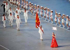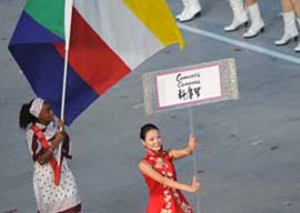8月8日晚8時,第29屆夏季奧林匹克運動會在國家體育場——“鳥巢”隆重開幕。這是各國代表團在開幕式上入場。