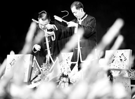 王景賢介紹說(shuō),總導(dǎo)演組選擇泉州提線木偶出于3個(gè)理由——提線木偶戲源于漢,興于唐,是中國(guó)戲曲的源頭之一。泉州提線木偶戲又是中國(guó)提線木偶戲的代表、國(guó)家級(jí)非物質(zhì)文化遺產(chǎn),具有很強(qiáng)的代表性;泉州提線木偶近百次出訪近40個(gè)國(guó)家和地區(qū),曾在聯(lián)合國(guó)總部演出,在國(guó)際上享有盛譽(yù);《四將開(kāi)臺(tái)》符合導(dǎo)演組的構(gòu)思意圖,4名演員都有30年藝齡,有能力在最短的時(shí)間里完成表演設(shè)計(jì)和演出任務(wù)。