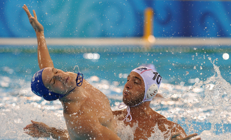 8月10日,在北京奧運會男子水球預賽中,西班牙男子水球隊迎戰(zhàn)加拿大男隊,西班牙隊球員費利佩·佩羅內(nèi)(右)和加拿大隊球員康斯坦丁·庫達巴 在水中“優(yōu)雅”地拼搶,宛如陶醉共舞,讓人莞爾。