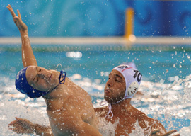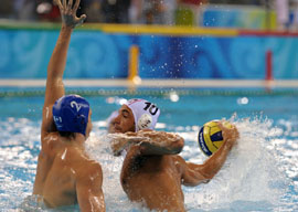 8月10日,北京奧運會水球比賽在奧體中心英東游泳館拉開帷幕,首場比賽西班牙隊以16比6戰(zhàn)勝加拿大隊。