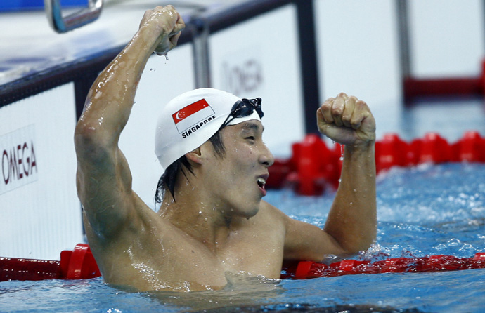 8月10日,新加坡選手布賴恩·鄭在男子200米自由泳預(yù)賽中,取得1分50秒41的成績(jī)。盡管未進(jìn)半決賽,能與高手同場(chǎng)競(jìng)技,布賴恩·鄭快樂(lè)無(wú)比。