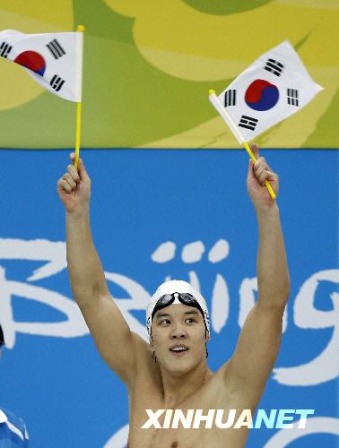 笑容燦爛的韓國(guó)陽(yáng)光少年樸泰桓8月10日在男子400米自由泳決賽中,以3分41秒86的成績(jī)最先抵達(dá)終點(diǎn),創(chuàng)下亞洲游泳的新紀(jì)元。亞軍同樣來(lái)自亞洲,是中國(guó)運(yùn)動(dòng)員張琳。