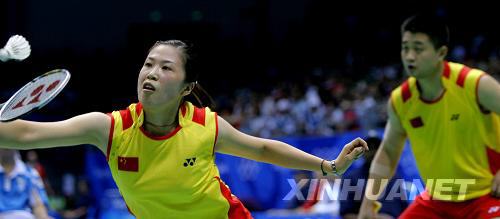 8月12日,中國選手高崚(左)/鄭波在比賽中。在當(dāng)日進(jìn)行的北京奧運(yùn)會羽毛球混合雙打前16名比賽中,中國選手高崚/鄭波以1比2不敵英國選手蓋爾·埃姆斯/內(nèi)森·羅伯遜,被淘汰出局。新華社記者