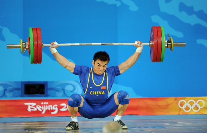 8月12日,中國運動員廖輝在比賽中。當(dāng)日,廖輝在北京奧運會舉重男子69公斤級決賽中以348公斤的總成績獲得金牌。
