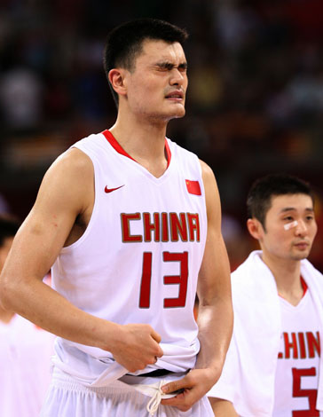 8月12日,中國隊(duì)姚明在比賽中。