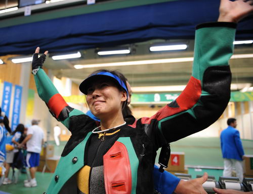 中國選手杜麗在賽后慶祝勝利(新華社記者 焦衛(wèi)平 攝)
