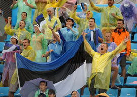 8月14日,觀眾在朝陽公園沙灘排球場冒雨觀看比賽。當日,北京奧運會沙灘排球小組賽在這里舉行,盡管北京降雨,卻依然擋不住沙排球迷的熱情。