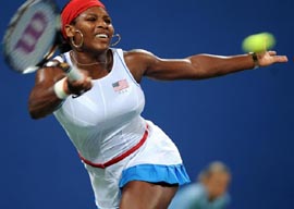 8月14日,在北京奧運(yùn)會(huì)網(wǎng)球女單四分之一決賽中,俄羅斯選手杰緬季耶娃以2比1戰(zhàn)勝美國(guó)選手小威廉姆斯。