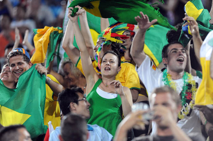 8月16日,熱情的球迷在朝陽(yáng)公園沙灘排球場(chǎng)觀看比賽。當(dāng)天,這里舉行了男女16強(qiáng)復(fù)賽。