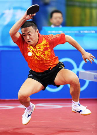 8月16日,中國選手馬琳在比賽中。當(dāng)日,中國隊在北京奧運(yùn)會乒乓球男團(tuán)半決賽中以3比0戰(zhàn)勝韓國隊,挺進(jìn)決賽,將于18日與德國隊爭奪金牌。