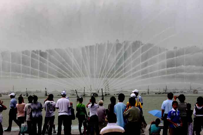 8月17日,人們在奧林匹克森林公園欣賞音樂噴泉表演。當(dāng)日,4萬觀眾來到北京奧林匹克公園游覽。占地1000多公頃的北京奧林匹克公園包括奧林匹克森林公園、景觀大道、國家體育館、國家體育場、國家游泳中心和運(yùn)動(dòng)員村等設(shè)施。