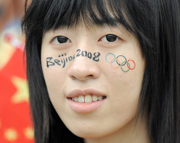 這是繪了“臉譜”的熱情球迷(8月11日攝)。