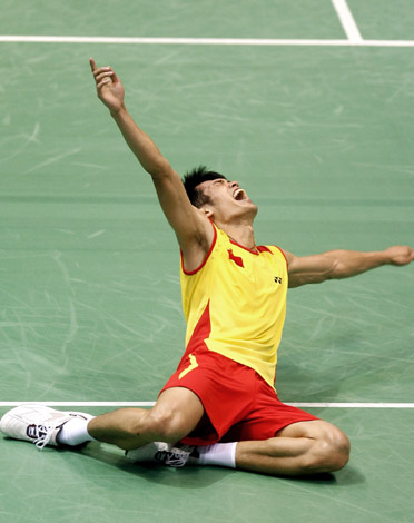 當(dāng)日,在北京奧運(yùn)會羽毛球男子單打決賽中,中國選手林丹以2比0戰(zhàn)勝馬來西亞選手李宗偉,奪得金牌。