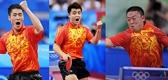 中國(guó)乒乓球隊(duì)18日晚改寫歷史,于北京奧運(yùn)會(huì)乒乓球男子團(tuán)體決賽中3:0擊敗德國(guó)隊(duì),奪得國(guó)球歷史上的第18枚奧運(yùn)金牌。 四年前在雅典,張怡寧為中國(guó)代表團(tuán)摘得第一百枚夏季奧運(yùn)會(huì)金牌,而王皓卻決賽負(fù)于柳承敏,丟掉分量最重的男單冠軍;四年后奧運(yùn)來到北京,中國(guó)乒乓球隊(duì)在自己的家門口續(xù)寫輝煌。 這也是世界杯冠軍王皓的第一塊奧運(yùn)會(huì)金牌。2000年悉尼奧運(yùn)會(huì)上,王勵(lì)勤與閻森搭檔曾奪得一枚男子雙打金牌;馬琳則與陳?配對(duì),在2004年雅典奧運(yùn)會(huì)上擊敗中國(guó)香港的李靜/高禮澤,獲得男雙冠軍。 有了這枚男團(tuán)金牌,兩年前在同一天完成人生另一個(gè)重大典禮的國(guó)乒男隊(duì)主教練劉國(guó)梁,也為曾經(jīng)同是乒乓球國(guó)手的妻子王瑾獻(xiàn)上了最好的結(jié)婚紀(jì)念日禮物。 18日晚的決戰(zhàn)中,劉郎妙計(jì)再生威,王皓打頭陣、馬琳“捉”波爾的布陣效果頗佳,王勵(lì)勤/王皓的雙打?qū)嵙τ肿銐蚨糁撇?許斯。在中國(guó)組合面前,這對(duì)贏得過世乒賽亞軍的“歐洲第一雙打”只搶到首局機(jī)會(huì),以13:11、5:11、8:11、7:11告負(fù)。 其實(shí),在鉆石級(jí)強(qiáng)手面前,是金子也會(huì)被掩去光芒。當(dāng)奧恰洛夫遇見當(dāng)今世界男乒第一人王皓,這位未滿20歲的歐洲新星幾乎沒機(jī)會(huì)表現(xiàn),“潛水艇”式發(fā)球產(chǎn)生的積極效果有限,反手優(yōu)勢(shì)也變成對(duì)手眼里的小菜一碟,11:4、11:8、11:7的三局比分輕松吞噬了奧恰洛夫的雄心。 和兩天前半決賽上對(duì)陣韓國(guó)隊(duì)時(shí)極為相似地,中國(guó)隊(duì)決賽中的唯一波折也發(fā)生在馬琳身上。對(duì)陣“歐洲第一人”波爾的第二局中,11:7先下一城的馬琳在急于取勝的焦躁心態(tài)驅(qū)使下自亂陣腳、連連失誤,白送波爾一個(gè)7:1領(lǐng)先的完美開局,雖然馬琳稍后重拾穩(wěn)定發(fā)揮,號(hào)稱“世界第一細(xì)膩”的前三板優(yōu)勢(shì)也屢屢發(fā)揮效用,但在波爾對(duì)其反手的一通連續(xù)猛攻之后,馬琳以8:11失掉了一局。 接下來的兩局中馬琳持續(xù)穩(wěn)健表現(xiàn),在11:4輕取第三局后,又在第四局中以7:5領(lǐng)先,劉國(guó)梁這時(shí)及時(shí)暫停布置戰(zhàn)術(shù),雖然暫停回來后馬琳先讓波爾扳回兩分,但此后的一系列攻防則沒讓對(duì)手抓到一點(diǎn)機(jī)會(huì),最后一記勢(shì)大力沉的扣殺甚至讓波爾右手著地險(xiǎn)些跪倒,11:7鎖定勝局。