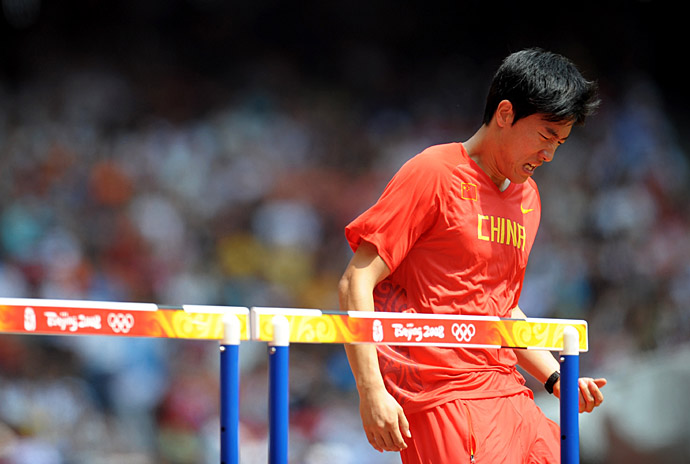8月18日,中國選手劉翔在比賽前進行上場準備時感到不適。當日,劉翔在北京奧運會男子110米欄第一輪比賽中,因為腳跟之傷退出比賽。