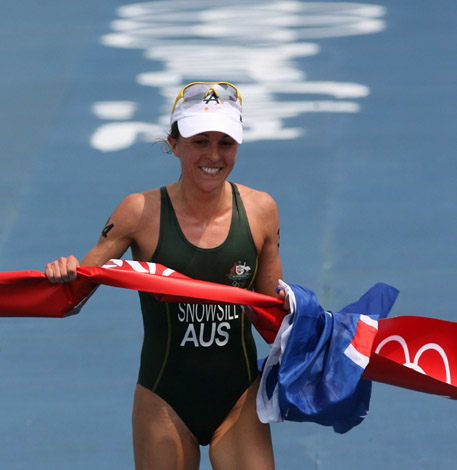 8月18日,北京奧運(yùn)會鐵人三項(xiàng)女子組決賽在北京十三陵水庫舉行,澳大利亞選手斯諾西爾奪得金牌。