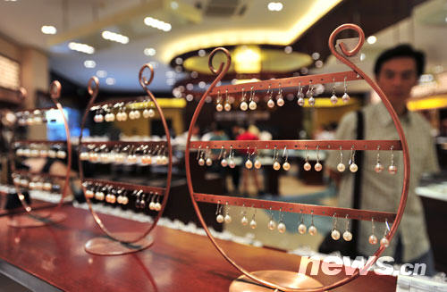 百工坊里精美的珍珠飾品(8月17日攝)。