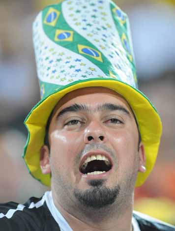 8月18日,巴西球迷。當(dāng)日,北京奧運(yùn)會(huì)沙灘排球1男子/4決賽結(jié)束。