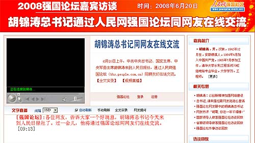 人民網(wǎng)直播胡錦濤總書記與網(wǎng)友在線交流(網(wǎng)頁截屏)
