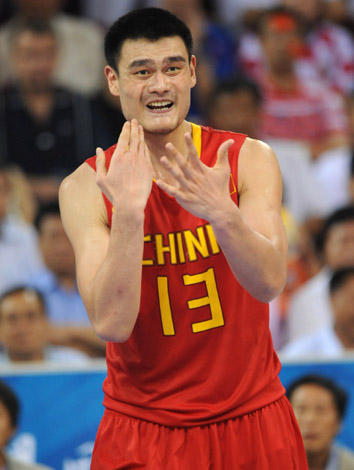8月20日,中國(guó)隊(duì)隊(duì)員姚明在比賽中。