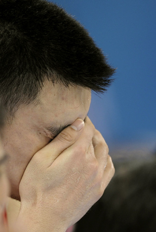 8月20日,在北京五棵松奧林匹克籃球館進行的北京奧運會男籃1/4決賽中,中國隊以68比94不敵立陶宛隊。這是中國男籃隊員姚明。