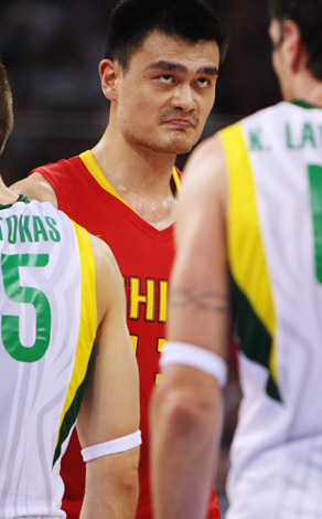 當(dāng)日,在北京五棵松奧林匹克籃球館進(jìn)行的北京奧運(yùn)會男籃1/4決賽中,中國隊(duì)以68比94不敵立陶宛隊(duì)。