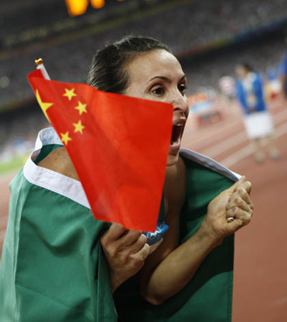 8月22日,巴西選手毛倫·伊加·馬吉在比賽后慶祝。當(dāng)日,馬吉在北京奧運會女子跳遠(yuǎn)決賽中以7米04的成績奪得金牌。