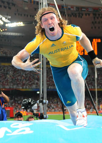 8月22日,澳大利亞選手史蒂夫·胡克在北京奧運會男子撐桿跳高決賽中奪得金牌。