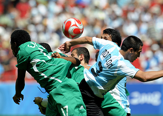 23日的鳥(niǎo)巢迎來(lái)了兩只雄鷹的對(duì)決:潘帕斯雄鷹阿根廷隊(duì)與非洲之鷹尼日利亞隊(duì)在北京奧運(yùn)會(huì)男足決賽中相遇。在似火驕陽(yáng)下鏖戰(zhàn)90分鐘之后,衛(wèi)冕冠軍阿根廷隊(duì)最終憑借迪·瑪利亞的一記輕巧吊射敲開(kāi)勝利之門(mén),以1:0擊敗對(duì)手奪冠。 這一勝利不僅幫助阿根廷隊(duì)成功復(fù)仇亞特蘭大奧運(yùn)會(huì)決賽最后一刻被尼日利亞隊(duì)入球擊敗之仇,同時(shí)實(shí)現(xiàn)了他們的衛(wèi)冕之夢(mèng),而且也幫助阿根廷在北京奧運(yùn)會(huì)上繼場(chǎng)地自行車(chē)項(xiàng)目之后奪得第二金。 比賽在正午12點(diǎn)鳴哨。擁有梅西、阿奎羅與里克爾梅這前場(chǎng)三叉戟的阿根廷隊(duì)自比賽開(kāi)始后便頻頻利用短傳滲透不斷發(fā)起進(jìn)攻,但對(duì)手在禁區(qū)前沿密集的防守成為阿根廷人推進(jìn)中無(wú)法逾越的屏障。反而是尼日利亞隊(duì)的幾次反擊打得有聲有色,幾腳遠(yuǎn)射也頗見(jiàn)功力。焦灼的比賽在正午的驕陽(yáng)下進(jìn)行了30分鐘后,雙方人馬勞頓,來(lái)自匈牙利的主裁維克托也見(jiàn)機(jī)行事,默許雙方球員集體來(lái)到場(chǎng)邊飲水解渴。此后的15分鐘內(nèi),雙方都無(wú)破門(mén)良機(jī),互交白卷。 阿根廷隊(duì)在下半場(chǎng)的比賽中戰(zhàn)術(shù)上出現(xiàn)了一定的變化,隊(duì)形有所收縮,防反意圖明顯。這一戰(zhàn)術(shù)在58分鐘時(shí)獲得成效:效力于葡萄牙本菲卡隊(duì)的瑪利亞在中線附近接梅西后場(chǎng)傳球時(shí),已經(jīng)撕破了對(duì)方前壓的后衛(wèi)線,之后他一路狂奔近20米,直到面前出現(xiàn)沖上前來(lái)的對(duì)方門(mén)將,他隨即起腳輕巧吊射,皮球在對(duì)方門(mén)線前落地彈起飛入網(wǎng)窩。 大約70分鐘時(shí),場(chǎng)上再度出現(xiàn)全體球員暫停喝水的有趣一幕。此后,尼日利亞隊(duì)集體壓上,不斷在阿根廷隊(duì)門(mén)前制造殺機(jī),尤其以71分鐘時(shí)禁區(qū)線上的遠(yuǎn)射和84分鐘時(shí)近門(mén)柱的捅射威脅最大。但阿根廷人沒(méi)有再給對(duì)手以重現(xiàn)歷史的機(jī)會(huì),1:0的比分保持到了終場(chǎng)。 比賽臨近結(jié)束,梅西被替換下場(chǎng),獲得了單獨(dú)享受全場(chǎng)8萬(wàn)9千余名球迷歡呼的榮耀。而當(dāng)現(xiàn)場(chǎng)屏幕出現(xiàn)看臺(tái)上觀戰(zhàn)的馬拉多納時(shí),全場(chǎng)觀眾再度給予了熱烈的呼喊。 奪冠后的阿根廷隊(duì)興奮異常,在頒獎(jiǎng)儀式后久久地在鳥(niǎo)巢里跳躍著歡慶勝利。而尼日利亞隊(duì)主帥亞亞落寞地說(shuō),“對(duì)于這樣的結(jié)果我感到非常失望,我們今天踢得非常好,只是沒(méi)有取得進(jìn)球而已,但比賽比的就是進(jìn)球。”