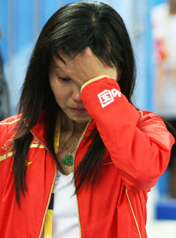 8月23日,中國(guó)跳水隊(duì)領(lǐng)隊(duì)周繼紅在男子10米跳臺(tái)決賽后。當(dāng)日,北京奧運(yùn)會(huì)最后一場(chǎng)跳水比賽——男子10米跳臺(tái)決賽在國(guó)家游泳中心“水立方”舉行,中國(guó)選手周呂鑫和隊(duì)友火亮惜敗澳大利亞選手馬修·米查姆,痛失金牌,中國(guó)跳水隊(duì)未能實(shí)現(xiàn)包攬本屆奧運(yùn)會(huì)所有跳水金牌的夢(mèng)想。