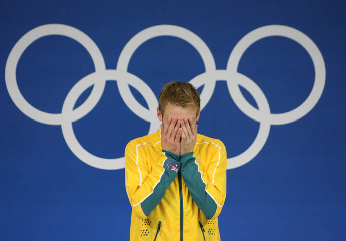 8月23日,澳大利亞選手馬修·米查姆在頒獎儀式上雙手掩面,喜極而泣。當(dāng)日,馬修·米查姆在北京奧運(yùn)會跳水男子10米跳臺決賽中力挫群英,以537.95分的總成績獲得冠軍。