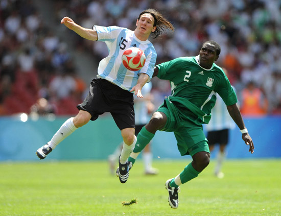 經(jīng)歷了巴塞羅那俱樂部與阿根廷隊的反復(fù)爭執(zhí),21歲的梅西終于如愿來到了奧運賽場。“參加奧運始終是我唯一的選擇。”梅西在兩方的扯皮中保持著堅定的決心。 北京奧運會賽場上,梅西是阿根廷藍(lán)白風(fēng)暴的偉大導(dǎo)演,也是該隊區(qū)別于其他球隊的“核武器”。對科特迪瓦隊時,他用一次進球和一次助攻擊潰了強大的對手;對荷蘭隊的比賽中,他又用一個進球和一記助攻幫助球隊鎖定勝局;在3:0擊敗巴西隊的比賽中,梅西幾乎參與了每一次進球,與尼日利亞隊的決賽也是他的巧妙助攻幫助隊友攻入制勝球。 梅西不僅征服了球迷,還征服了更多體育界同行。NBA巨星科比已成為其粉絲,親自來看他比賽,還說梅西是所有運動員中最吸引他的,因為他在場上和別人都不一樣。尼日利亞隊隊員在頒獎儀式前甚至爭搶著和梅西合影。