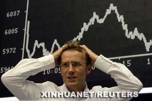 9月16日,在德國法蘭克福股票交易所,一名交易員站在德國股市DAX指數(shù)顯示屏前。新華社/路透