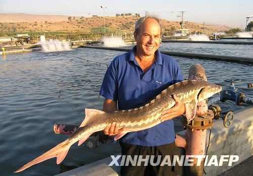 這張未標(biāo)明日期的照片里,以色列加利利魚子醬公司總經(jīng)理伊加爾·本-茲維在以色列北部的達(dá)恩農(nóng)場手捧一條鱘魚。鱘魚的魚卵是世界上最昂貴的食品之一--魚子醬的原料。這里每年養(yǎng)殖鱘魚約7000尾,能夠產(chǎn)出3噸的高品質(zhì)魚子醬。盡管遠(yuǎn)離鱘魚的主產(chǎn)地伏爾加河和里海,無法跟世界最主要的魚子醬生產(chǎn)國俄羅斯和伊朗抗衡,以色列人還是在魚子醬市場上分得了一杯羹。新華社/法新