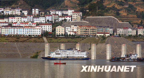 10月5日,客輪正經(jīng)過五級船閘駛向三峽庫區(qū)。