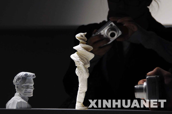 當(dāng)天,以“科技與藝術(shù)的完美交融”為主題的數(shù)碼石雕全國巡展在北京今日美術(shù)館拉開帷幕。這些作品都是首先由美國藝術(shù)家使用三維數(shù)字設(shè)計(jì)解決方案,在電腦虛擬的環(huán)境中進(jìn)行設(shè)計(jì)、分析、模擬和建模。而后,中國的雕刻師們參照三維快速成形打印設(shè)備制作的物理模型,以手工雕刻完成作品。