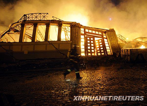 10月16日,在捷克首都布拉格,一名消防員從被燒毀的工業(yè)宮左翼跑過。當(dāng)天,布拉格的百年建筑工業(yè)宮失火,其左翼付之一炬。1891年建造的工業(yè)宮是布拉格著名的會(huì)展中心,也是當(dāng)?shù)氐臉?biāo)志性建筑之一。新華社/路透
