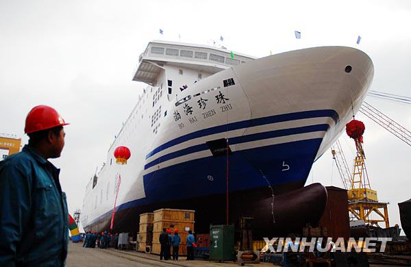 大型客滾船“渤海珍珠”下水