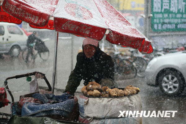 11月3日,牡丹江市街頭雪花紛飛。