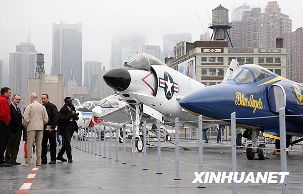 11月8日,在美國紐約曼哈頓86號碼頭,游客在“無畏”號?詹┪镳^甲板上參觀。