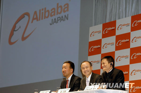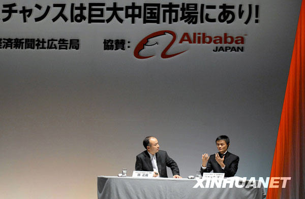 11月11日,在日本首都東京,阿里巴巴集團(tuán)董事局主席馬云(右)和日本軟銀集團(tuán)董事長(zhǎng)孫正義向日本企業(yè)介紹中國(guó)網(wǎng)絡(luò)商務(wù)的發(fā)展情況。當(dāng)天,阿里巴巴日本株式會(huì)社舉行面向日本企業(yè)的大型說(shuō)明會(huì),吸引了上千名日本企業(yè)代表和相關(guān)人士參加。阿里巴巴集團(tuán)計(jì)劃從2009年開(kāi)始與日本軟銀集團(tuán)合作,為中國(guó)消費(fèi)者提供專門經(jīng)營(yíng)日本商品的網(wǎng)絡(luò)服務(wù)。 |