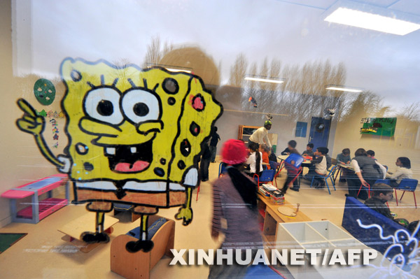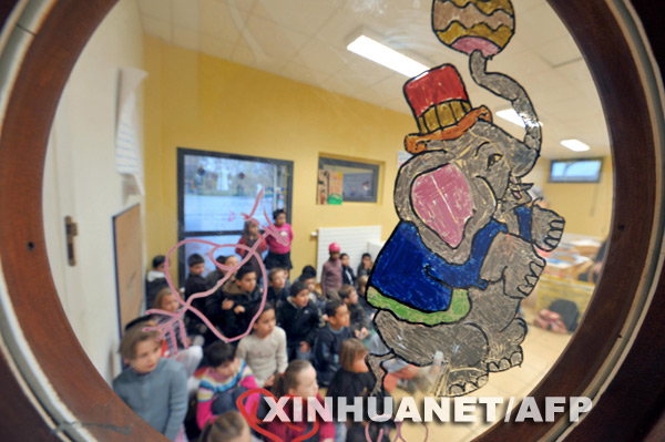 11月20日,在法國西北部的埃魯維勒圣克萊爾,孩子們因教師罷工被送到一個臨時的看護(hù)中心。新華社/法新