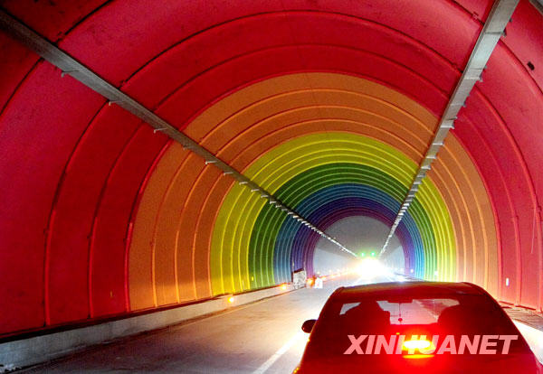 11月25日,一輛汽車從二廣高速公路洛陽段上臺隧道內(nèi)駛過。11月26日,國家主干線二連浩特至廣州高速公路河南大安至寄料段、寄料至分水嶺段、分水嶺至南陽段等三條高速公路建成通車,二連浩特至廣州高速公路河南段至此全線貫通。二廣高速公路起點在內(nèi)蒙古自治區(qū)二連浩特,途經(jīng)內(nèi)蒙古、山西、河南、湖北、湖南、廣東6。▍^(qū))20多個地市,全長2685公里。目前,大部分路段尚在建設(shè)中。