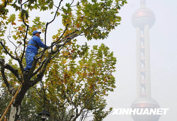 11月26日,大霧籠罩上海東方明珠塔。新華社發(fā)