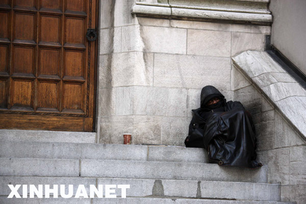 12月5日,美國勞工部公布的數(shù)據(jù)顯示,今年11月份美國非農(nóng)業(yè)部門就業(yè)崗位減少53.3萬個,為1974年12月份以來的最大減幅,失業(yè)率上升到6.7%,為15年來的最高點。這是11月11日,一名流浪漢在美國紐約曼哈頓街頭露宿。 | |
