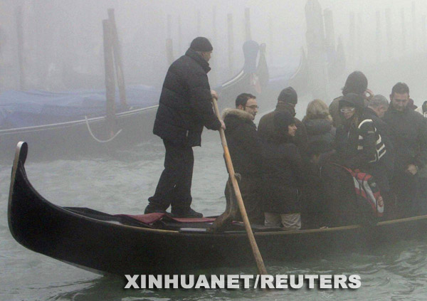 12月10日,在意大利“水城”威尼斯,人們在濃霧中乘船游覽。 新華社/路透