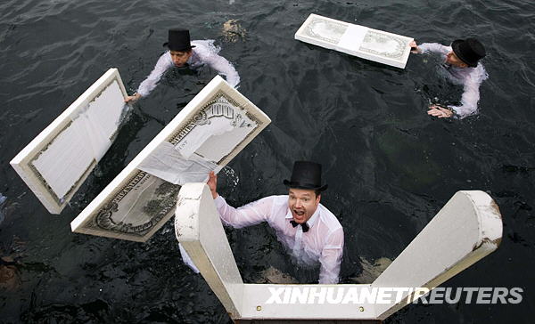 12月14日,在瑞士日內(nèi)瓦湖,幾名打扮成銀行從業(yè)者的選手參加第71屆“圣誕杯”冬泳比賽。當(dāng)天,眾多參賽者在6攝氏度的湖水中暢游125米,以別開生面的方式迎接即將到來的圣誕節(jié)。新華社/路透