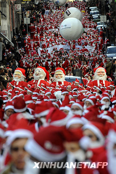 12月14日,人們打扮成圣誕老人模樣參加在葡萄牙城市波爾圖舉行的一年一度的圣誕老人巡游。與往年不同的是,參加今年波爾圖圣誕老人巡游的人數(shù)超過14000,參加者意欲創(chuàng)造新的吉尼斯世界紀(jì)錄。新華社/法新